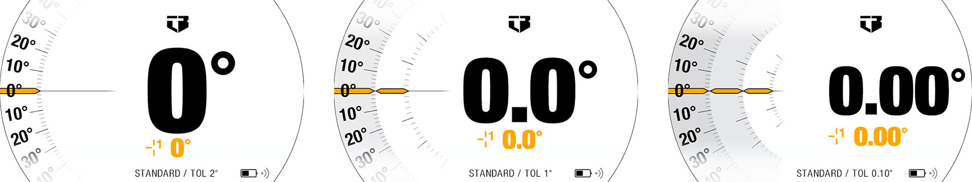 The main screen of this device is a full-color TFT backlit LCD screen...referred to during development as the 'working screen'. Here are three states of the main working screen for this device, each displaying increasing levels of precision from left to right.