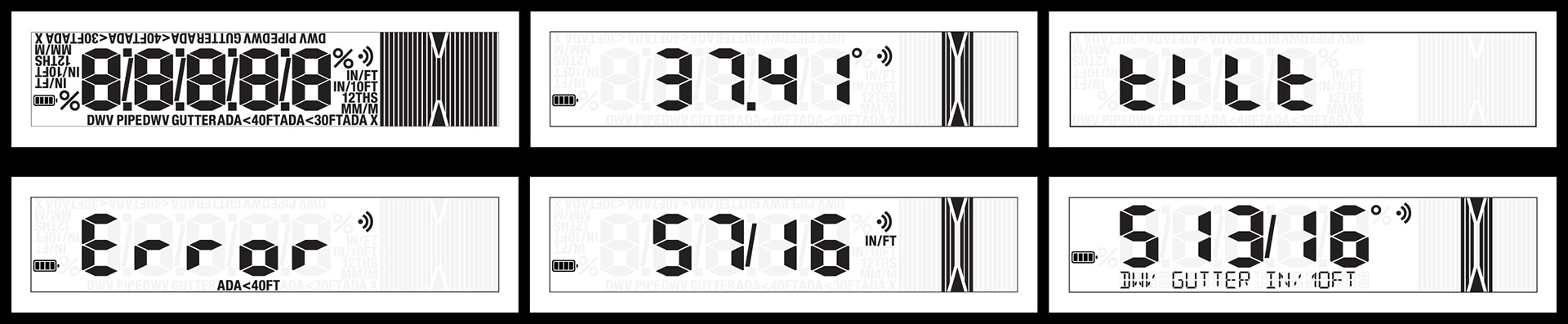 A little concept design work. On the left I'm trying to get my brain wrapped around the idea of slope as a unit of measure. In the center some segmented LCD ideation, and on the right is a page of general doodlings.